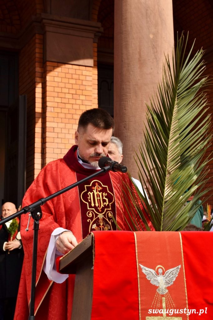 Główna Msza Święta z procesją z palmami dookoła kościoła odbyła się o godzinie 13.00. Mszy świętej przewodniczył ks. proboszcz Dominik Koperski.