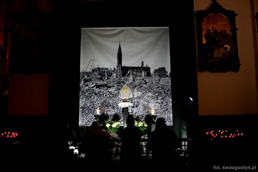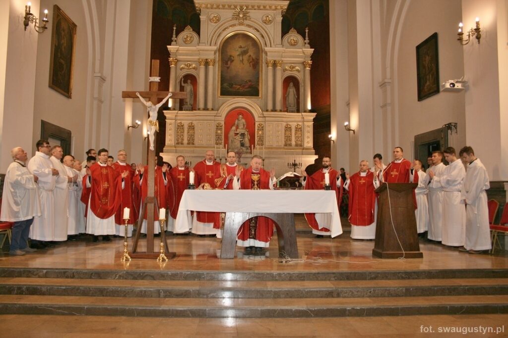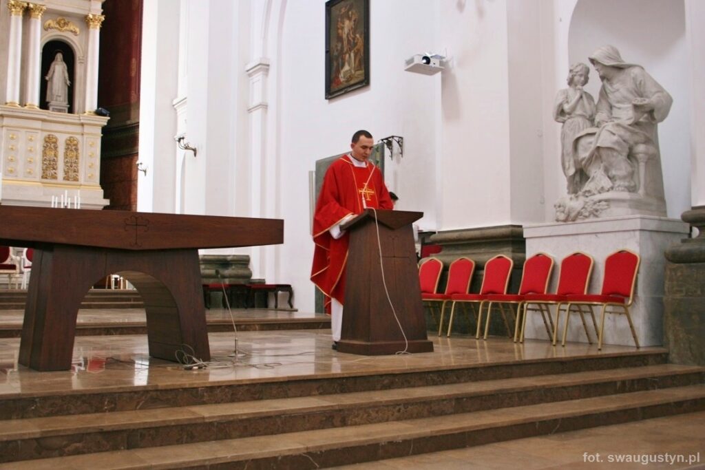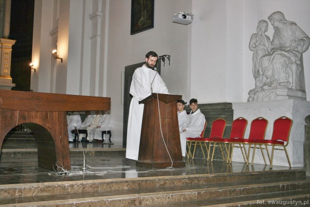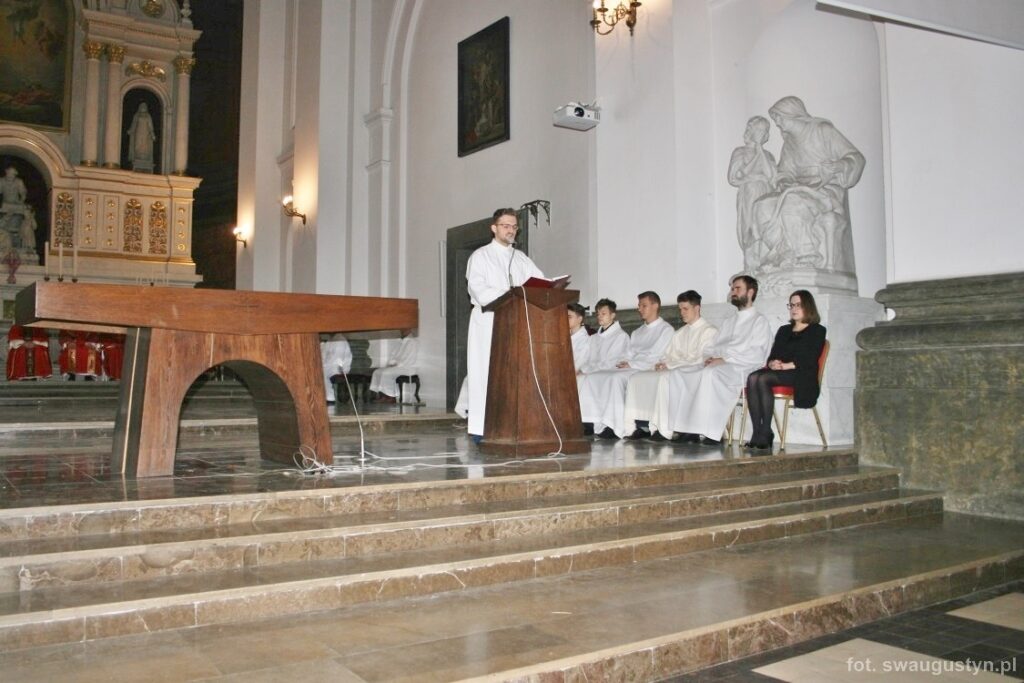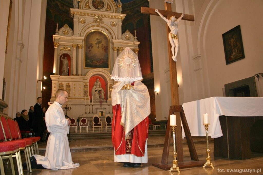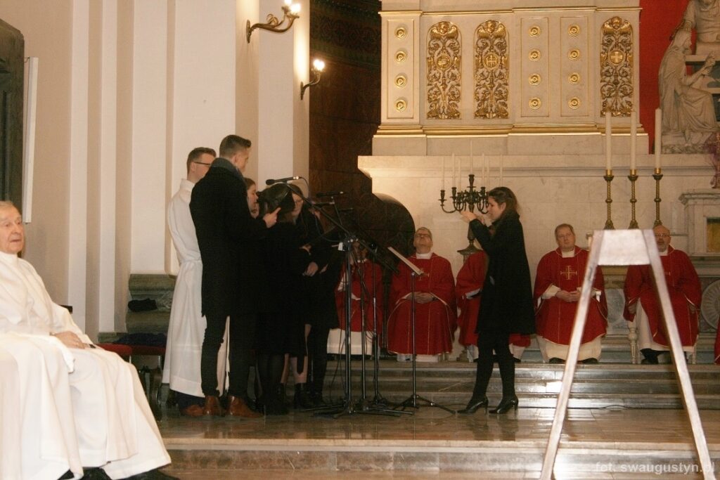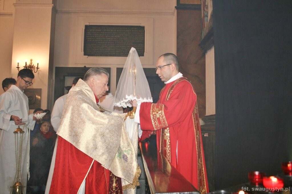 30.03.2018 r. obchodziliśmy Wielki Piątek. Tego dnia Kościół nie sprawował Eucharystii. Podczas wieczornej liturgii słuchaliśmy opisu Męki Pańskiej wg św. Jana. Po modlitwie wiernych Diakon uroczyście wniósł Krzyż zatrzymując się trzy razy i stopniowo go odsłaniając śpiewał wezwanie „Oto drzewo krzyża na którym zawisło Zbawienie świata”. Następnie wszyscy uczestniczyliśmy w Adoracji podchodząc do Krzyża i całując go. Po Komunii Świętej Pan Jezus w monstrancji okrytej białym welonem został przeniesiony do grobu, gdzie mogliśmy Go adorować do godziny 23.00.