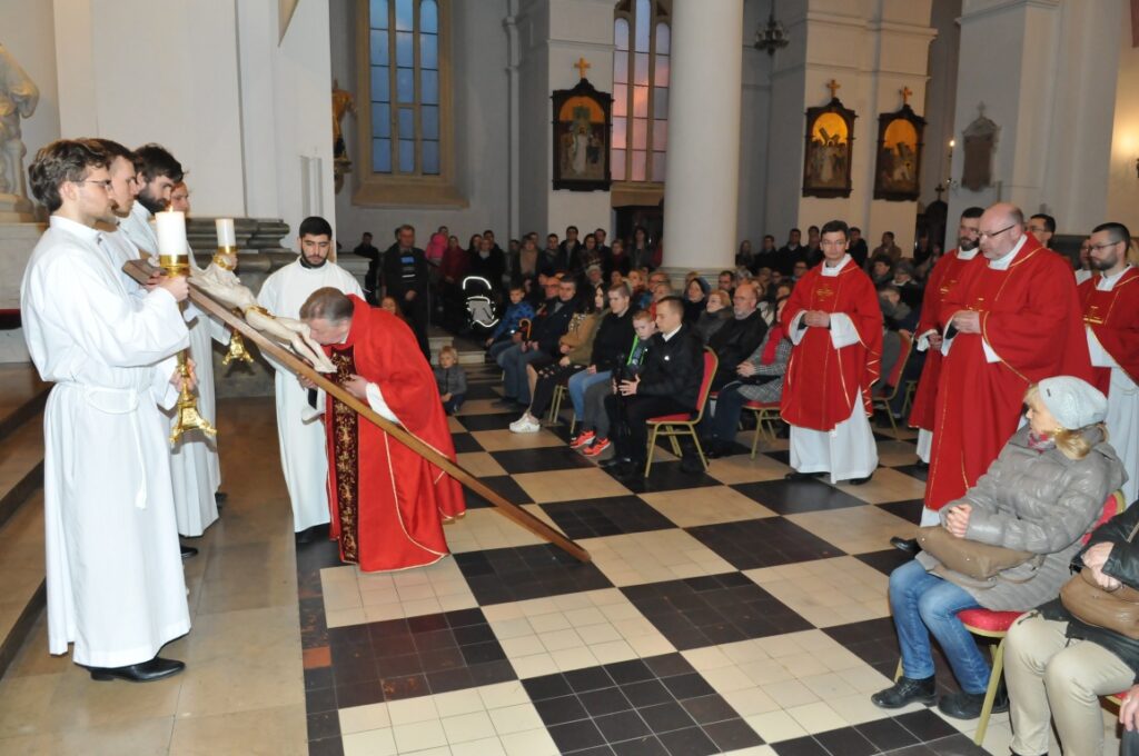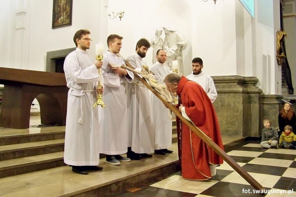 Ceremoniom Wielkiego Piątku przypadającego 14.04.2017 r. przewodniczył ks. Proboszcz Walenty Królak. Liturgia została ubogacona odśpiewaniem Pasji wg św. Jana przez miejscowych księży wikariuszy. Po Komunii świętej do Grobu Pańskiego wyruszyła uroczysta procesja. Grób Pański został przygotowany przez ks. Sebastiana Wawrzyńskiego.